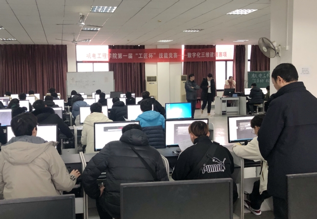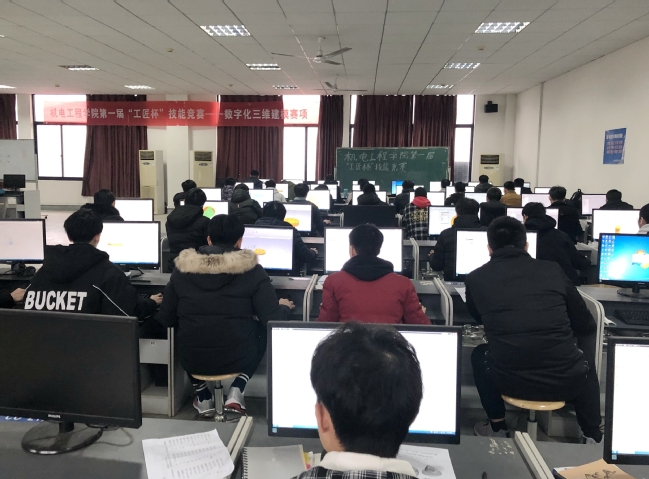 本次“数字化三维建模大赛”主要考查学生识读工程图、运用UG软件进行机械零部件的三维建模能力,比赛吸引了机电工程学院2018、2019级近百名学生参加。在腊八节这天,室外寒气袭人,室内却热火朝天。机电学子专心致志,认真完成数字化三维建模,在紧张的气氛中只听到选手点击键盘和鼠标的声音。