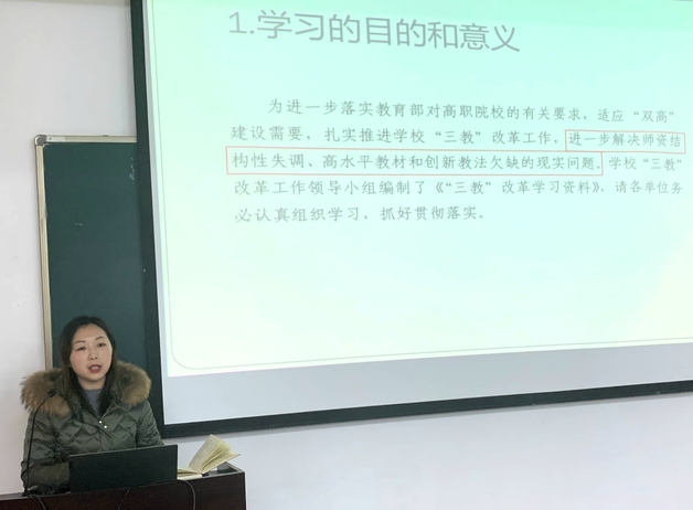 李雪芹作《推动“三教”改革 提升教学质量》专题报告
