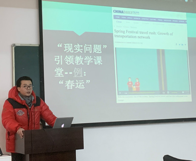 聂钟鸣老师分享课程思政教学经验。他从课堂组织入手,通过“现实问题”引领教学课堂,采用“批评性讨论默化思政教育”方法,按照“发现问题-分析问题-解决问题”的模式,培养学生语言应用能力和思辨能力,进行“润物无声”的思政教育。