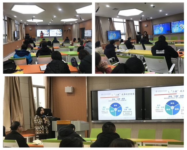 1月11日上午,机电工程学院教师黄维应邀到会,从个人参赛情况、国赛立意方向、信息化资源、能力回归四个方面介绍了国赛对教师的能力要求,分享其参加国赛经验。老师们普遍认为黄维的经验很受用,希望在今后的比赛中与她多沟通交流。