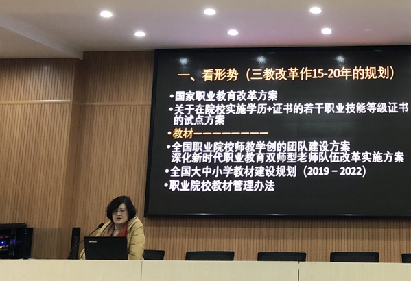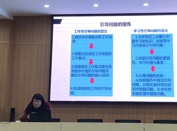社会职业与职业教育研究院副教授向丽作《工学结合课程学材的编写与使用》专题报告,生动展示了一体化活页式学材,分享了活页式学材的技术路径与关键,讲解了工学结合学材与传统教材的区别、容易进入的误区等。向丽的讲解详实,条理分明,为教师编写新教材提供了新思路。