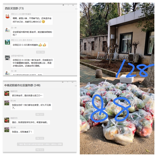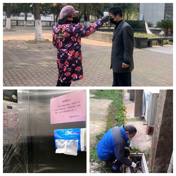 春节期间,武职后勤服务中心员工们24小时抢修水电,为校内家属区和公共区域消毒,配置废弃口罩专用桶,为住校老师提供团购蔬菜和送货服务,在电梯粘贴消杀温馨提示,添置相关清洁卫生用品……他们以实际行动为师生提供生活需求保障,为师生安全健康保驾护航。留校物业龙师傅说:“看到被清扫干净的校园,心里才踏实。”