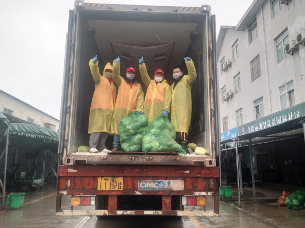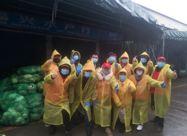 李辉(后排左三)参加搬运抗击疫情所需蔬果