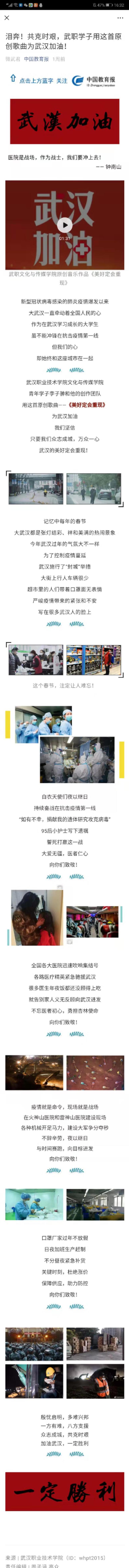 【中国教育报】】泪奔!共克时艰,武职学子用这首原创歌曲为武汉加油!