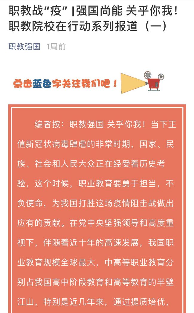 职教战“疫” |强国尚能 关乎你我!职教院校在行动系列报道(一)