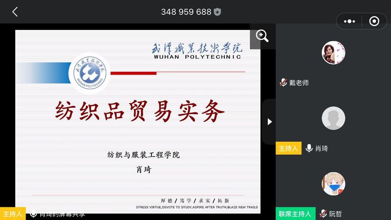 肖琦老师的纺织品贸易课程首堂课介绍清晰明了,对学生提出明确的学习要求,当堂布置学习任务、当堂完成、当堂批改并指导,实现了高效的空中课堂教学模式。