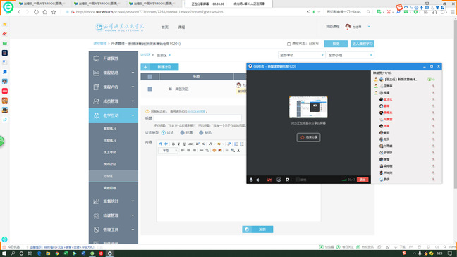 7:37,商学院各教师研讨群里,“课前调试系统”截图已刷屏很久。老师们一边调试系统,一边在群里分享着各平台的使用情况。