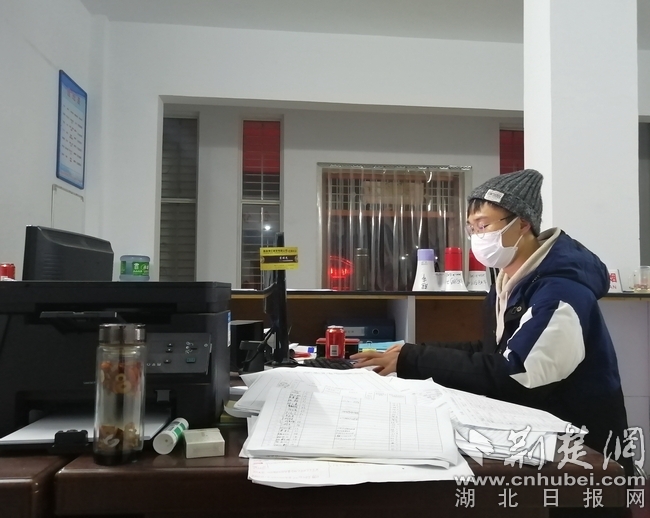 叶壮志每天将镇上居民所需物资和体温测量登记成册,并输入统计网站,做好防疫信息化和便民服务工作。为了确保不漏掉一户物资需求、不漏掉一个体温数据,他经常从早上八点工作到次日凌晨两点多。