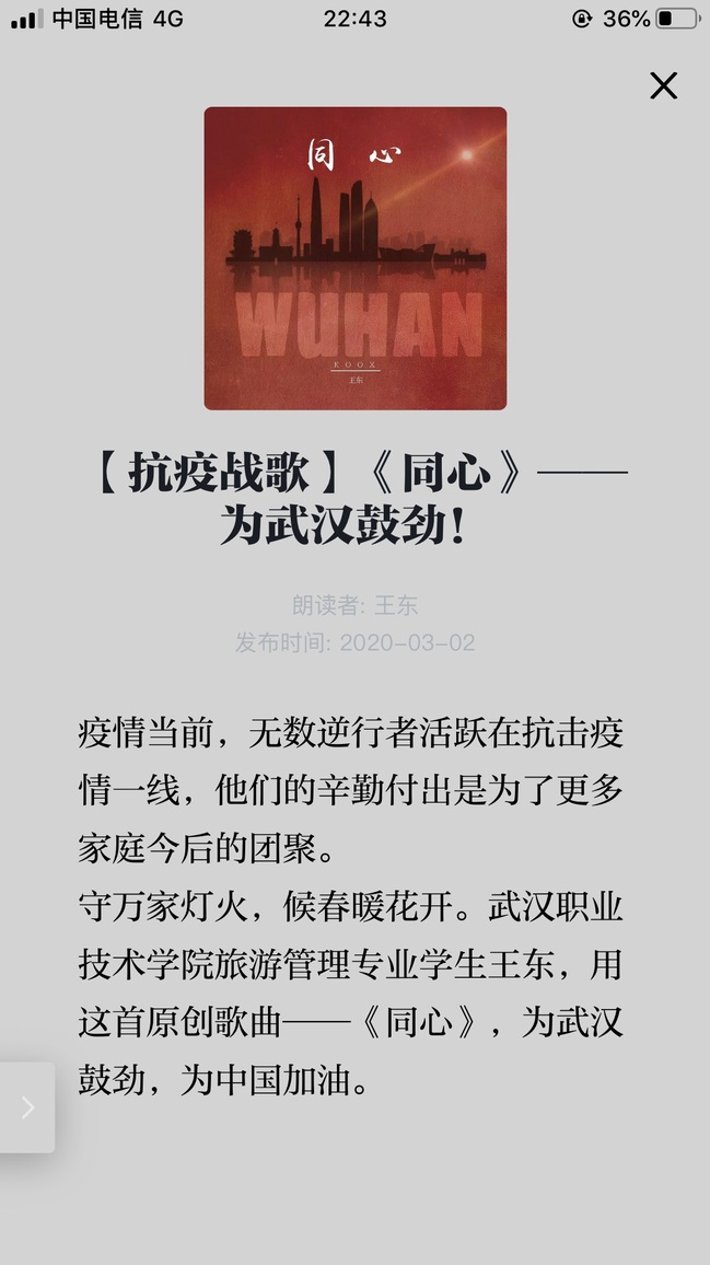 详情请见:抗疫战歌《同心》——为武汉鼓劲!