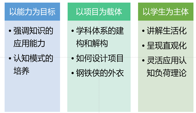 为更好地执行教育部“停课不停教,停课不停学”的政策,让在线课堂有持续的吸引性和学习实效,陈亭志老师主动寻求在线课堂教学方式的创新与突破,系统学习了脑科学与课堂学习的基础理论、大脑学习的心理认知连接机制等相关内容,总结出“高效输入+高效输出”的教学理念,认为“学习即连接”。为了帮助学生在大脑里建立新知识的联接,陈老师的课程给出了很多具体又有效的教的方法,制定了具体的输出式学习方式,将PPT制作的可视化原则和方法、语义情境化的方法和路径、认知负荷理论等方法系统的运用到课堂教学中。