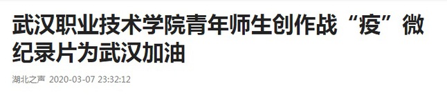 武汉职业技术学院青年师生创作战“疫”微纪录片为武汉加油