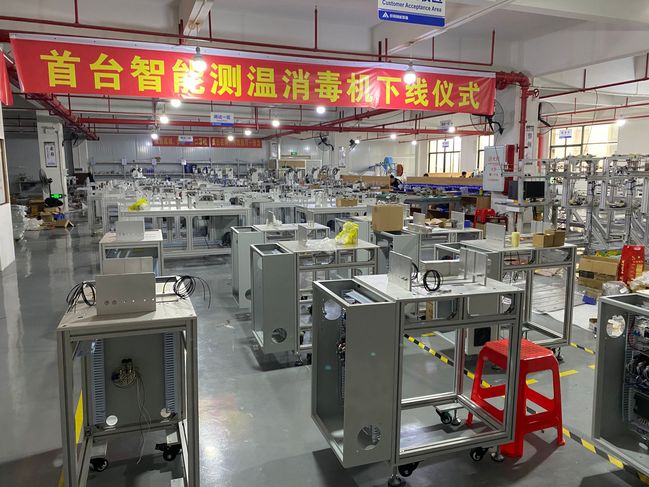 首台无人免接触式智能测温消毒一体机下线
