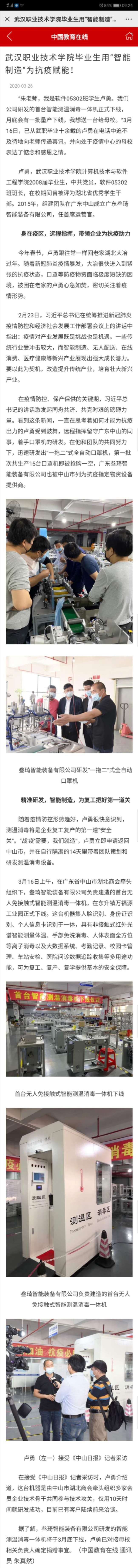 【中国教育在线】武汉职业技术学院毕业生用“智能制造”为抗疫赋能!