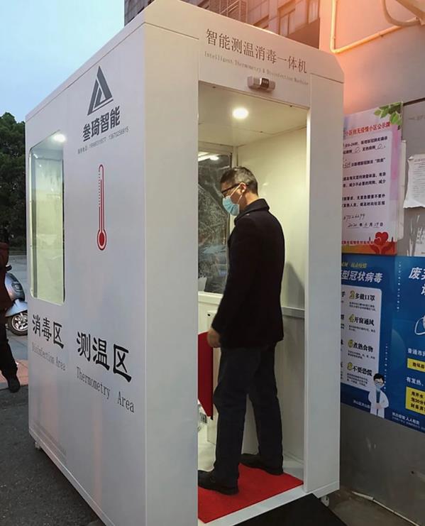 4月6日,首台智能测温消毒一体机在武汉职业技术学院东区校门口完成安装和调试,开始投入使用。