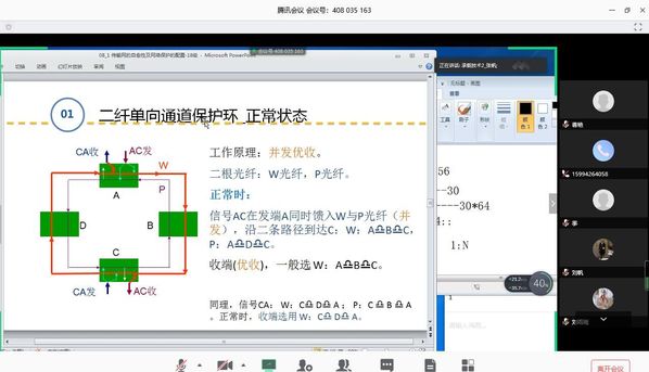 专业课《承载技术2》教师张帆运用“理论讲解+案例分析+模拟实验”三步法为通信18303班讲授通信网络故障保护策略。课前,她在智慧职教平台上提供预习资源,通过mooc平台进行预习测验;课中,她利用腾讯会议直播讲解网络的自愈性、链形保护、通道保护环、复用段保护环等知识,通过屏幕分享方式展示ppt内容。通道保护环配置、复用段保护环配置是实践环节,张帆指导学生在虚拟机中安装xp系统和网管软件E300,以完成这两个环节的基本操作演示。课后,在mooc平台课堂讨论区收集课堂实践练习中学生网络设计思路对应的拓扑图,及时给予评判和解答。