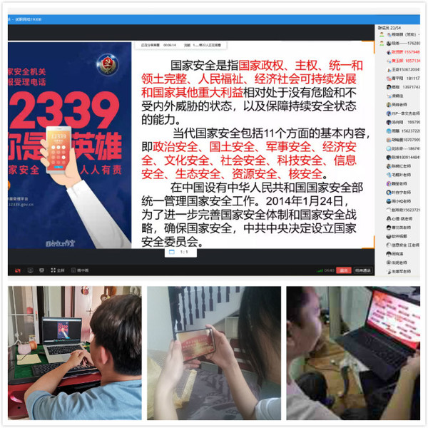 什么是国家安全?国家安全涵盖哪些领域?4月15日,辅导员彭雨通过腾讯课堂等形式,为300余名学生在线讲述我国的国家安全发展历程以及新形势下国家安全风险等问题。