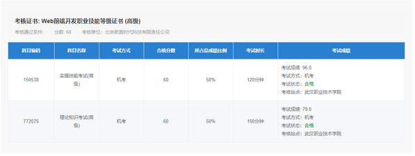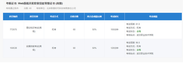 在此次认证考试中,来自计算机技术与软件工程学院计算机网络技术“1+X”Web前端开发教学创新团队的何定华、项阳阳、任勇、李芳、邓小飞等5名老师也报名参加了初级和中级认证考试,并全部通过,通过率100%,其中,项阳阳老师还以实操技能满分、理论知识91分通过初级考试,彰显了我校的办学实力和教师队伍的高水平。