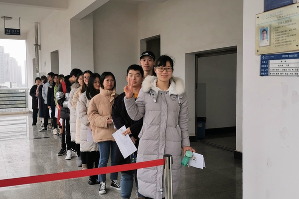 参加考试的师生有序入场(右一为项阳阳老师)