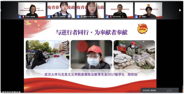 “绽放战疫青春”故事分享会特别邀请了省市战疫先进典型、来自武汉大学马克思主义学院思想政治教育专业大三学生郑欣怡和我校四名战疫学生代表作防疫战疫先进事迹报告。