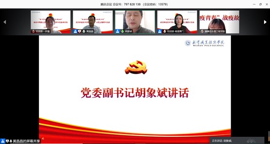 我校生物工程学院药营18302班康鑫月以《“疫”起守卫家乡》为题讲述了她在家乡汉北河大桥上的防疫故事;计算机技术与软件工程学院网络19302班周彩云以《做一名家乡防疫战中的逆行者》为题分享了她在寒冷天气执勤登记武汉返乡流动人员的经历;商学院工管18302班李涛以《卸下戎装志不改,抗击疫情做贡献》为题讲述了他作为一名退役大学生士兵到社区报到参与防疫的心路历程;机电工程学院自动化类19302班周鑫欣以《我的青春抗疫故事》为题讲述了他在村合作社参与疫情防控志愿服务的故事。