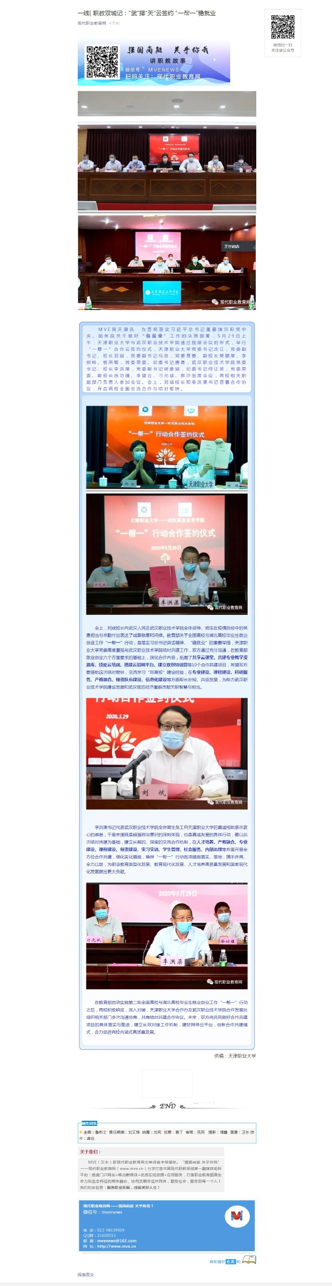 【现代职业教育网】一线| 职教双城记:“武”择“天”云签约 “一帮一”稳就业