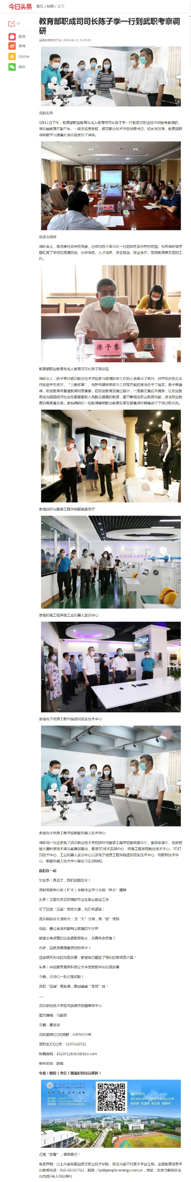 【全国教育信息平台】教育部职成司司长陈子季一行到武职考察调研