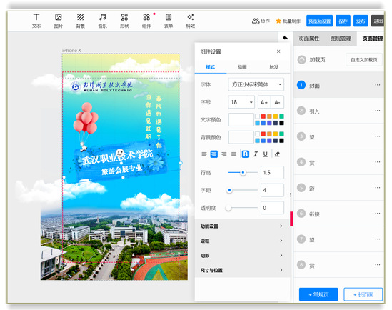 接下来的一周时间里,会展学子们在老师指导下,大胆构思、精心设计,反复修改每一个细节和动效。6月8日,各小组打造出专属会展专业的定制H5动画,这种互动式推广能够起到良好的宣传效果,还能实现个人信息搜集、在线咨询问题等功能,更好地助力招生宣传工作。