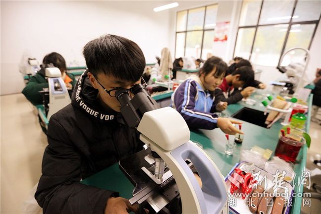 五峰职校茶叶专业学生在实验室做植物幼茎切片实验。通讯员 供图
