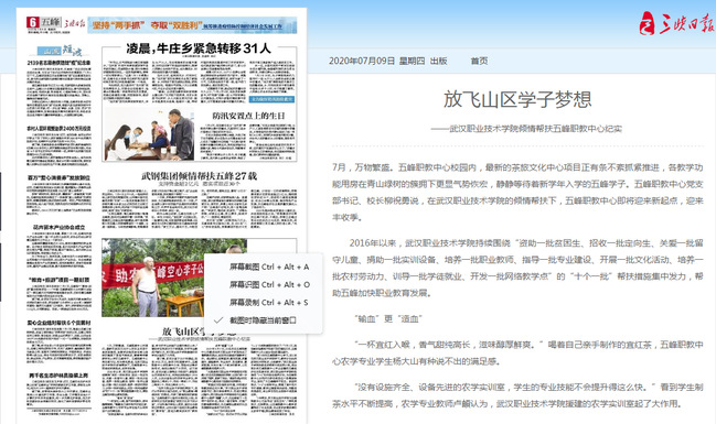 详情请见:放飞山区学子梦想——武汉职业技术学院倾情帮扶五峰职教中心纪实
