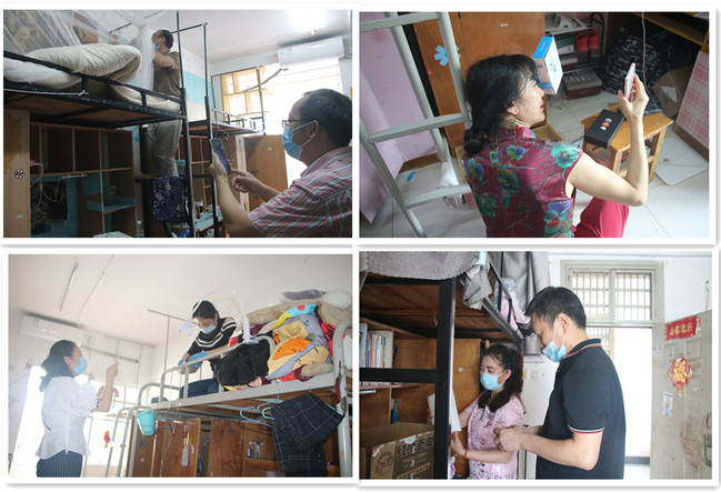 考虑到已离校半年有余的毕业班学生对各自物品的摆放位置有些模糊,老师们通过微信视频连线直播寝室,与毕业生耐心沟通,一件件细心查找,一包包精心整理。