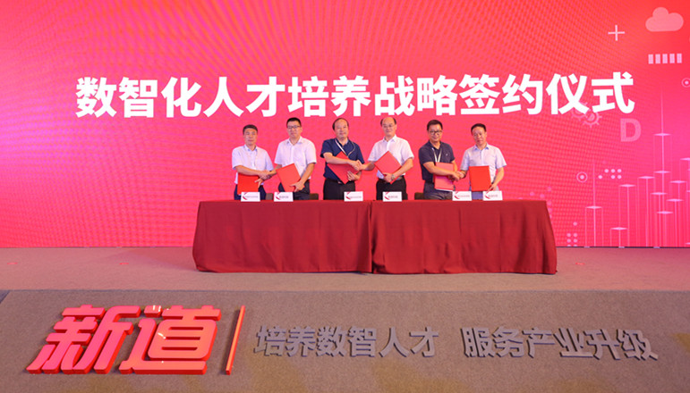 副校长郭沙(右二)参加数智化人才培养战略签约仪式