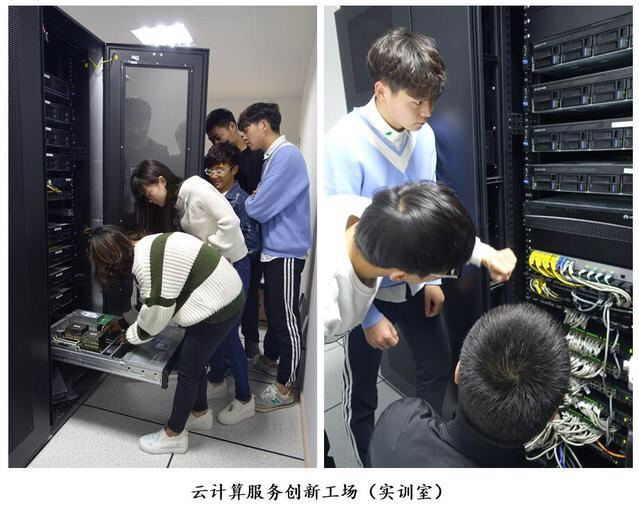 学生在尚十算服务创新工场(实训室)进行布线操作