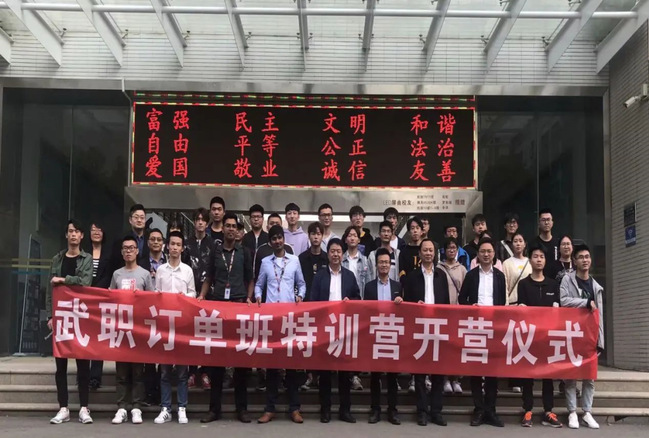 机电工程学院工业机器人专业与武汉金石兴机器人自动化工程有限公司共建“武职工业机器人技术大师工作室”和“机器人工程应用创新技术平台”,派驻企业高级工程师参与机器人专业的“英才培养计划”,师生参与典型生产性工程项目研究、开发、设计、调试、技术支持等全流程环节的工作,延伸在校师生课堂理论和实践之外的创新学习空间,并进行教学实训案例和创新项目转化,做到产、学、研有机结合。