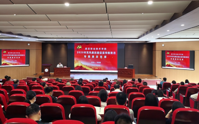 武职网讯(通讯员 许征)为扎实做好2020年党风廉政建设宣传教育月工作,压紧压实党风廉政建设主体责任,9月28日下午,校党委书记李洪渠以“抓实落细全面从严治党要求 以良好政治生态引领高质量发展”为主题,为全体中层以上干部、党支部书记、专职组织员讲授专题廉政党课。党委副书记胡象斌主持专题廉政党课。