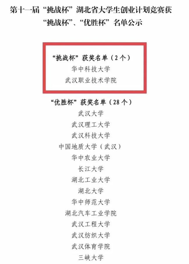 详情请见:武汉职业技术学院勇夺第十一届“挑战杯”湖北省大学生创业计划竞赛“挑战杯”