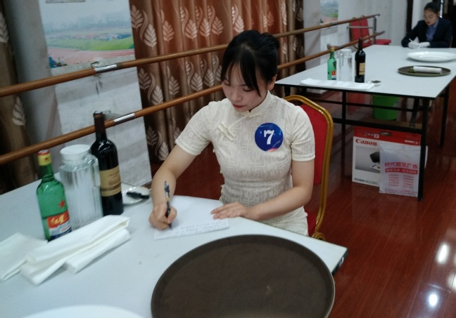 我校选手朱向琳在比赛现场进行宴会餐前准备