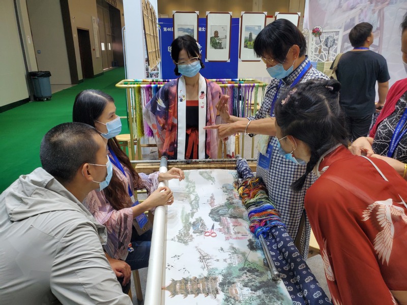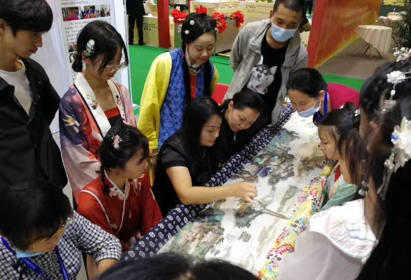 武职网讯(通讯员 徐芳芝)9月28日至29日,由湖北省人民政府主办、湖北省人力资源和社会保障厅承办的第二届湖北工匠精神表彰暨技能强省推进会在中国光谷科技会展中心盛彩举行,由我校纺织与服装工程学院九夏汉文化社团成员承担的“黄春萍汉绣技能大师工作室”汉绣技艺在民族精湛技艺风采展示活动现场惊艳亮相,受到与会领导及观众的关注和好评。湖北省非物质文化遗产汉绣传承人首席民间工艺传承大师、“山花奖”获得者黄春萍老师,纺织与服装工程学院院长戴冬秀、教师代表和九夏汉文化社成员等二十余人参加活动。