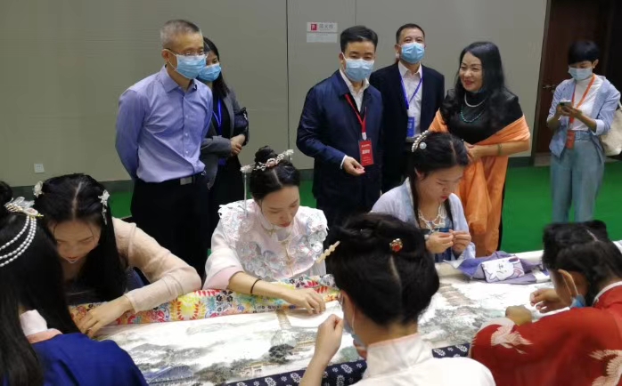 纺织与服装工程学院院长戴冬秀表示,手工刺绣作为我国非物质文化遗产的重要代表,有着独特的历史、艺术和文化价值。近年来,学院积极推进文化传承创新、教学教研教法改革,以“四化工程”为抓手打造高校、非遗传承人、传承学生“三位一体”的创新模式,凸显办学特色。汉绣以楚绣为基础底蕴深厚,特色鲜明,纺织与服装工程学院将与黄春萍汉绣大师工作室深入合作,开办汉绣特色班,致力传承发展中华刺绣文化。