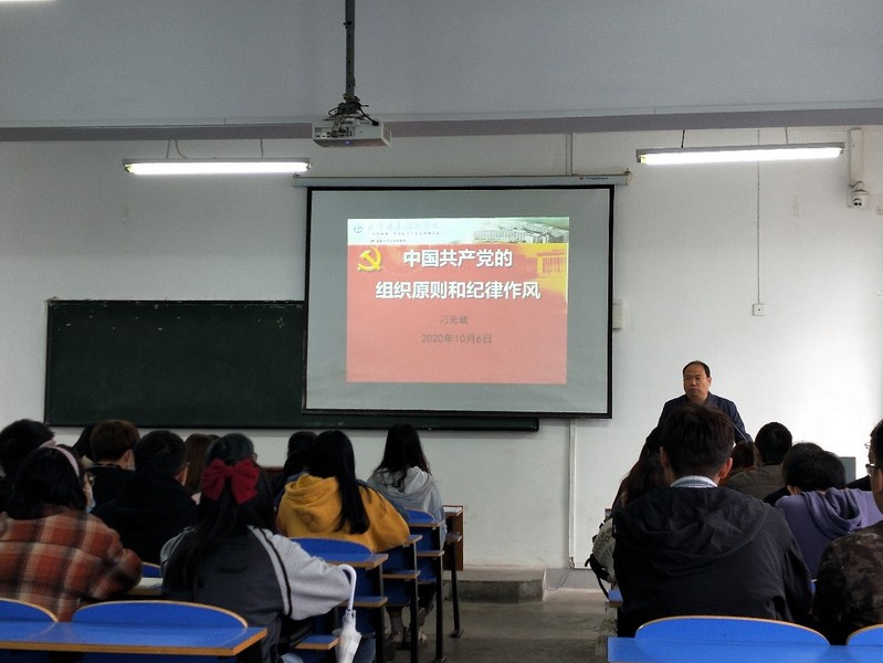武职网讯(通讯员 刘晶)10月6日中午,副校长刁元斌在逸思楼为建筑工程学院第41期学生党校班61名入党积极分子讲了一堂《党的组织原则、纪律和作风》专题党课。