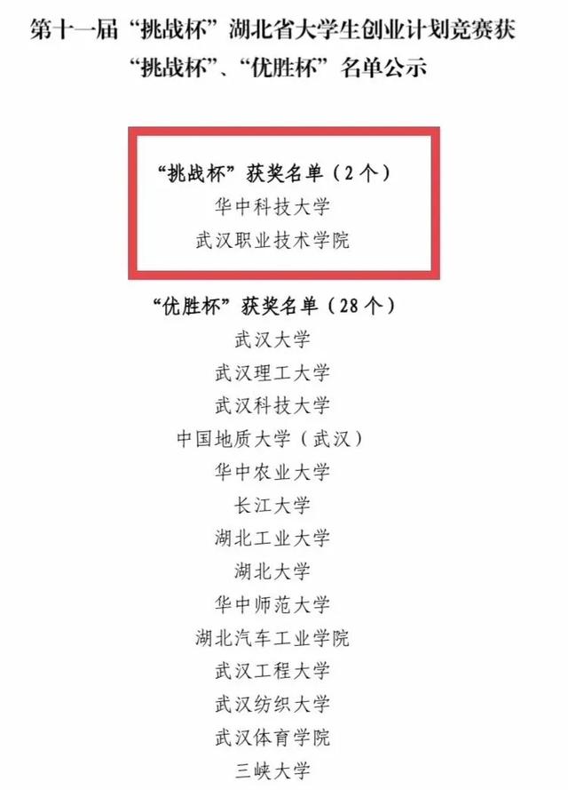 第十一届“挑战杯”湖北省大学生创业计划竞赛武职获奖名单