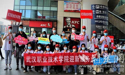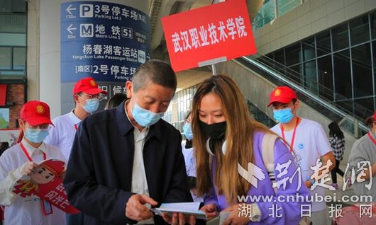 武汉职业技术学院党委书记、校长李洪渠到武汉火车站迎接新生。(学校供图)