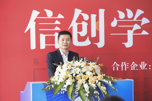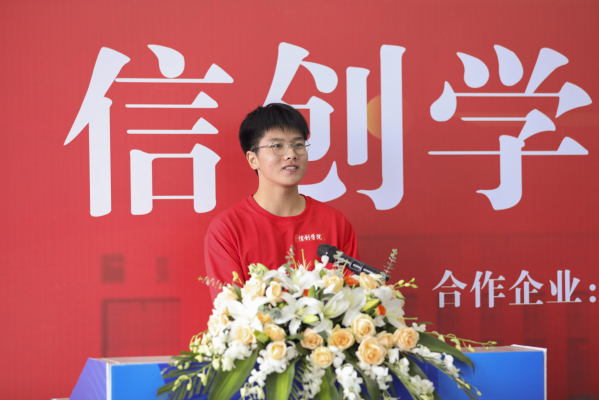 计算机技术与软件工程学院网络技术专业教师江岚作为教师代表发言。他在发言中介绍了信创产业的大背景,并寄语全体信创学院学子要树立远大理想和目标,传承艰苦奋斗的优良作风,培养探索求知的首创精神,德技双修,知行合一,团结互助,厚积薄发,努力成为报效祖国的信创精英。