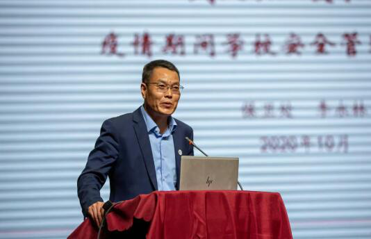 李永林介绍了疫情期间学校安全管理的相关情况,并通过大量生动的事例和工作现场图片,分享了疫情期间自己带领队员历经千难万险确保校园安全稳定的故事,并提出了后疫情时期学校安全管理的一些思考。