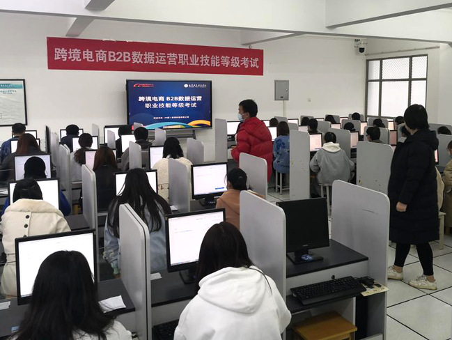 武职网讯(通讯员 黄小蕊 摄影 聂钟鸣)11月22日下午,“1+X”跨境电商B2B数据运营职业技能等级认证考试在武汉职业技术学院外语外贸实训中心举行,外语外贸学院商务英语专业44名学生参加考试。