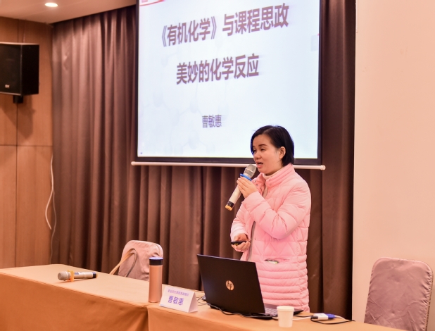 华中农业大学副教授曹敏惠,多次获得全国教学竞赛一等奖、二等奖,她以《有机化学与课程思政美妙的化学反应》为题,详述了自己在教授专业课《有机化学》过程中的思路和方法,指出做好课程思政,先要做好课程建设、做好教学改革、做好教师队伍建设。曹敏惠强调,对于课程思政教学案例而言,设计为王,要确定课程思政的内容与方向、根据课程特征选择合适的元素。曹敏惠分享了自己在具体章节中的教学案例设计思路以及与学生的互动交流,得到学员一致好评。
