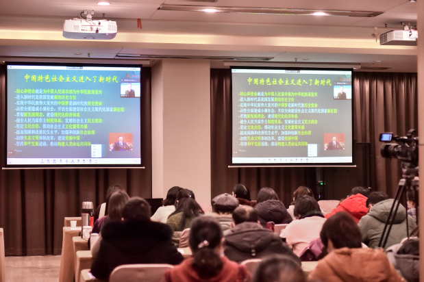 武汉大学马克思主义学院副院长、副教授陈世峰作《课程思政与思政课程如何有机结合》专题讲座。陈世峰指出,要做好课程思政建设,要做到教师团队化、内容开放化、形式专业化,其中,教学形式专业化需多学科支撑、教学内容开放化需要多学科共建、教师团队化需多学科合作。陈世峰强调,走不出思政的思政不是好思政,课程思政建设需要新闻、艺术等学科的技术支持,思政课需要与多学科联手探索建设的新形式,各学科也可以探索短视频等思政育人新形式。