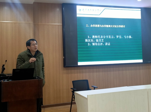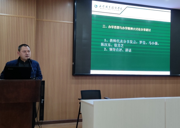 武职网讯(通讯员 朱丽芬)12月21日下午,纺织与服装工程学院在凌曦楼B2002会议室召开“学校精神和办学思想大讨论”交流分享会,副校长李望云、党委宣传部部长刘合强出席会议。会议由纺织与服装工程学院党委书记陈衡主持。