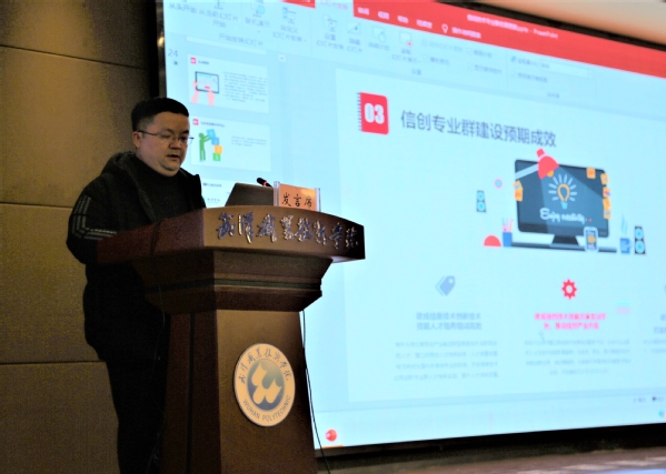 信创学院副院长邓小飞以《信创技术专业群发展思路》为题进行了分享发言。邓小飞简要介绍了信创产业背景,指出信创专业群以立德树人为根本,以提升人才培养质量、支撑国家和湖北省信创产业发展为主题,面向信创产业,对接湖北省IT基础设施转换战略,服务从IT底层的基础软硬件到上层的应用软件全产业链的转变。邓小飞现场解读了信创专业群设置与定位、课程教学资源建设、教师教学创新团队建设、信创共享型实训基地建设、社会服务、信创专业群本科试点、国际交流与合作等方面的发展举措,提出要把信创学院建设成为信息技术创新、技术技能人才培养培训高地,要依托信创学院建成信创技术技能共享实训平台,推动信创产业升级,要吸引行业领军人才、打造高水平教学创新团队。