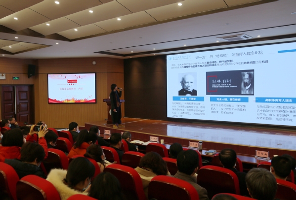 体育美育工作部教师卢洋以《我校体育历史及思想流变的思考》为题作分享。卢洋从学校体育历史及思想、体育教学与硬件设施的历史变迁、体育工作部门名称变更三个方面,对学校体育教育教学工作进行了全面回顾和总结,提出高标准、高质量、高要求的教学,“追求高职院校中的前列和顶尖”一直是学校体育工作奋斗的目标和行为准则。卢洋认为,特色高水平院校建设的含义应该是指一流标准的“制定者”“示范者”“先行者”,武职体育是学生发展、成长重要的组成部分,要破除工具性、功利性思想,加强体育课程的独立性、个性化、多样性、包容性,要让体育课程生活化、实用化,吸引更多学生喜爱体育、崇尚体育,要通过体育塑造性格、培养个性、完善人格、走进体育、参与体育、掌握体育、体会体育、终身体育。