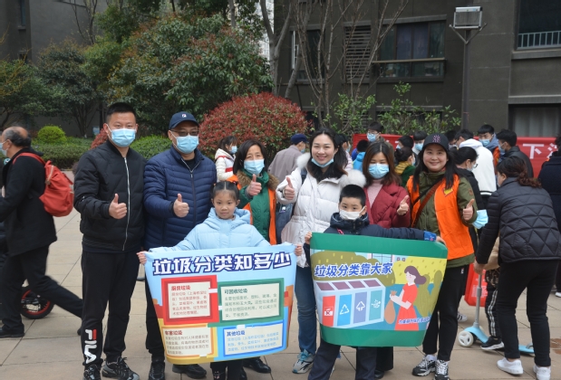 社区居民与志愿者在垃圾分类知识宣讲现场合影
